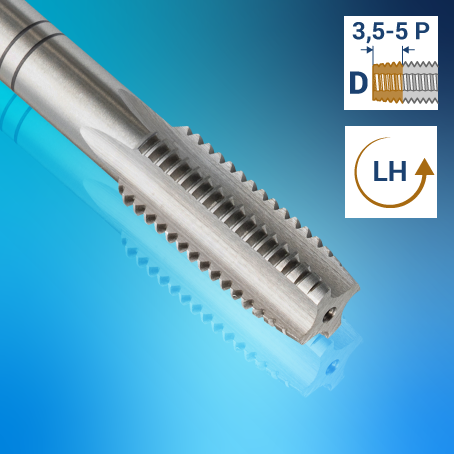 REBELL bietet Hand-Gewindebohrer an, die linksschneidend für das metrische ISO-Regelgewinde nach DIN 13 sind. Das Regelgewinde ist ein Grobgewinde, d.h. die Steigung (Abstand zwischen den Gewindespitzen) ist in Relation zum Gewindedurchmesser größtmöglich. Häufig wird beim metrischen Regelgewinde die Steigung nicht genannt, da sie der Standardsteigung entspricht. Die Handgewindebohrer-Sätze für das metrische Regelgewinde sind 3-teilig. REBELL Gewindeschneider sind besonders kraftvoll und effizient.