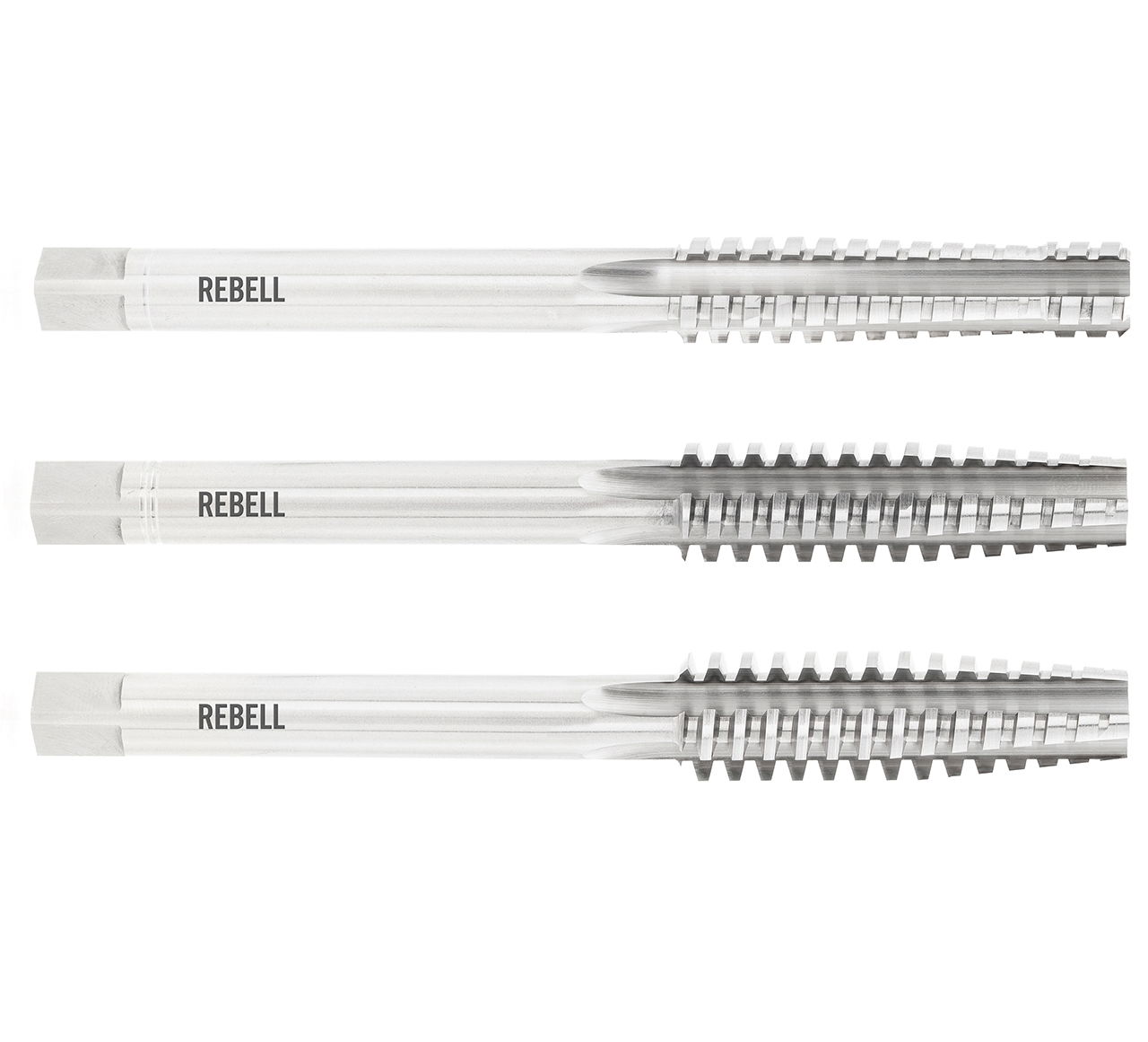 REBELL Handgewindebohrer 3-tlg. Satz Vorschneider mit Führungszapfen TR 12 x 3 LH 7H HSS - gerade genutet - Werksnorm - Typ N