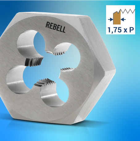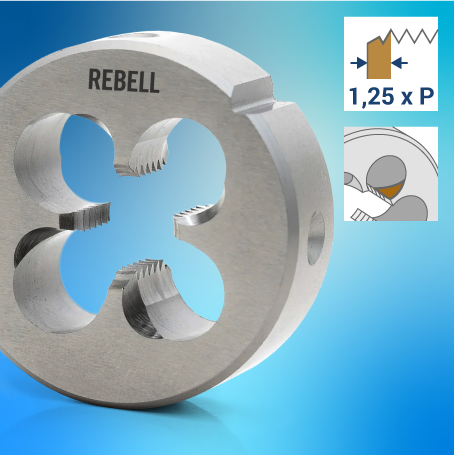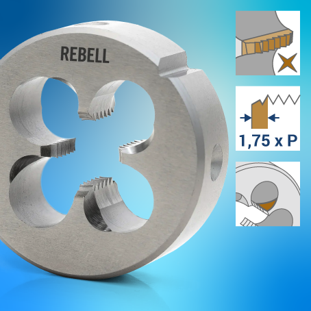 Qualitativ hochwertige runde Schneideisen und Sechskantschneideisen (Schneidmutter) von REBELL für das metrische ISO-Regelgewinde nach DIN 13. Das Regelgewinde ist ein Grobgewinde, d.h. die Steigung (Abstand zwischen den Gewindespitzen) ist in Relation zum Gewindedurchmesser größtmöglich. Häufig wird beim metrischen Regelgewinde die Steigung nicht genannt, da sie der Standardsteigung entspricht. Die runden Schneideisen und Sechskantschneideisen von REBELL sind hochwertige Gewindeschneider, deshalb schneiden sie präzise und sauber.